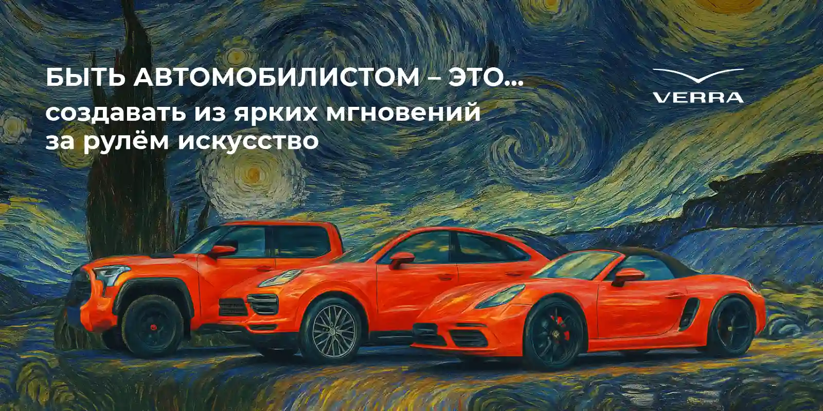 Мы подготовили для вас серию праздничных открыток, вдохновлённых великими картинами и красотой дороги. В каждой – свой характер, свой автомобиль и свой смысл.